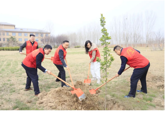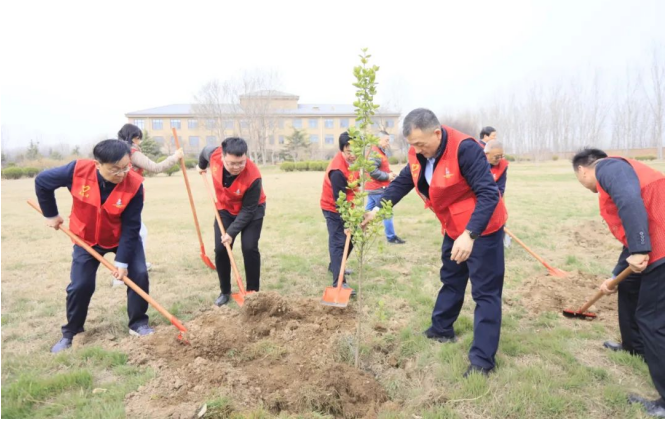 植树现场,大家分工明确,配合默契,有的挥锨挖坑,有的扶苗培土,有的提桶浇水,每道环节衔接有序、配合默契,每道工序仔细认真、一丝不苟,呈现出一派忙碌有序、热火朝天的劳动景象,洋溢着团结协作、奋发向上的良好氛围。经过紧张的劳作,一排排新种植的树苗迎风而立,尽显春日勃勃生机、万物竞发的姿态。