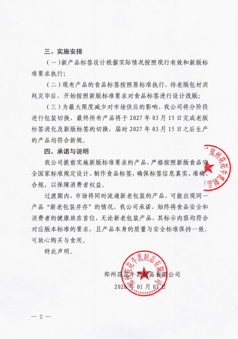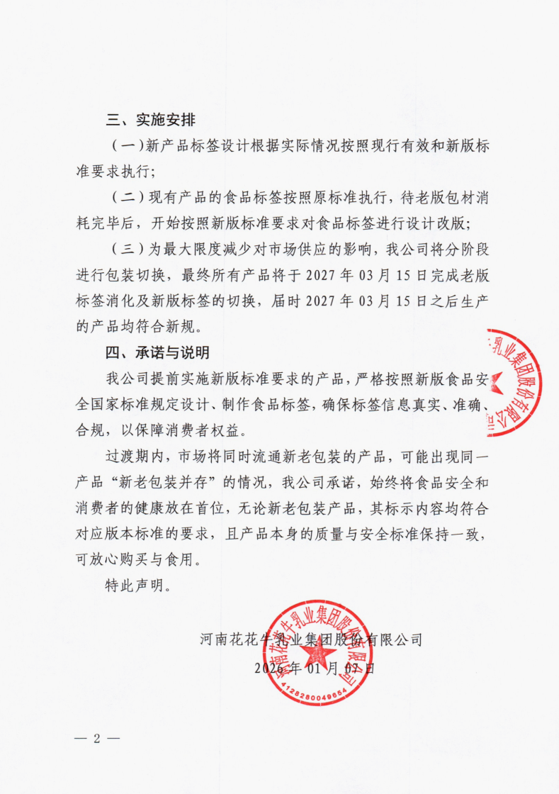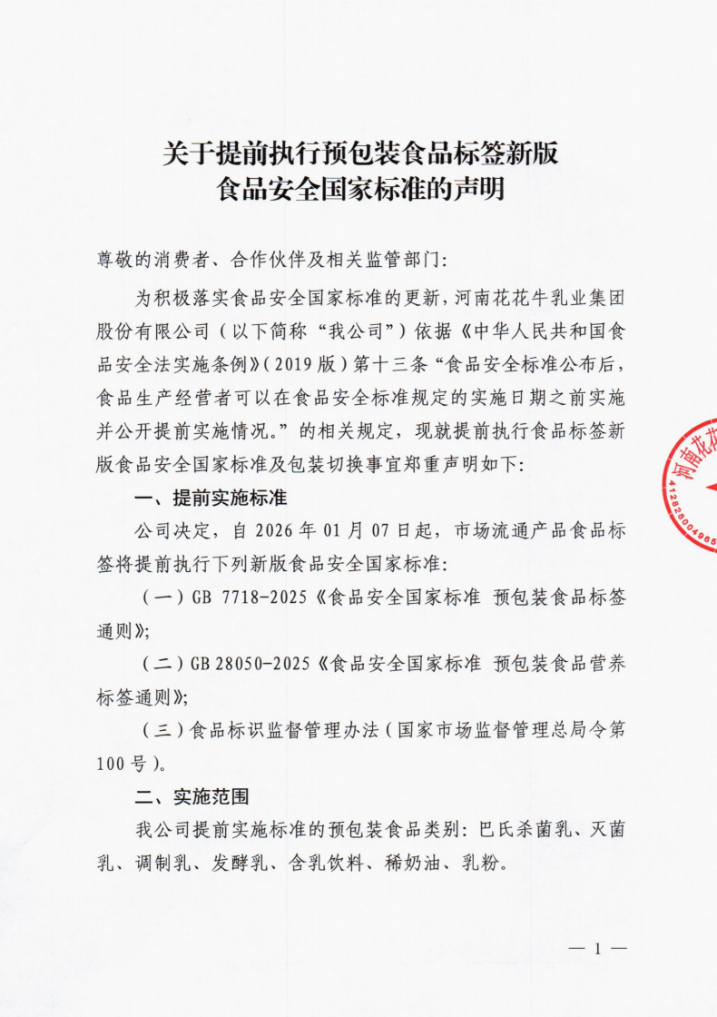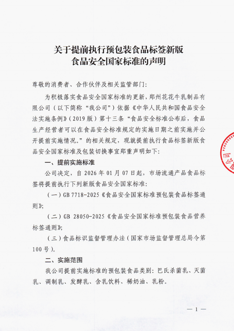 关于提前执行预包装食品标签新版食品安全国家标准的声明